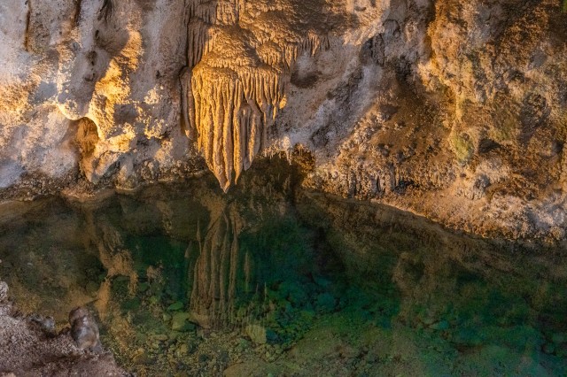 The walk in is something over a mile and descends about 750 feet in that distance. The whole way, you’re surrounded by rock formations ranging from the beautiful to the bizarre. It’s difficult to imagine what it was like to find this cavern as a 16-year-old cowhand carrying a lantern! Texas-born Jim White first entered the cavern around 1898. He may not have been the first to enter, but he was the first to explore extensively.